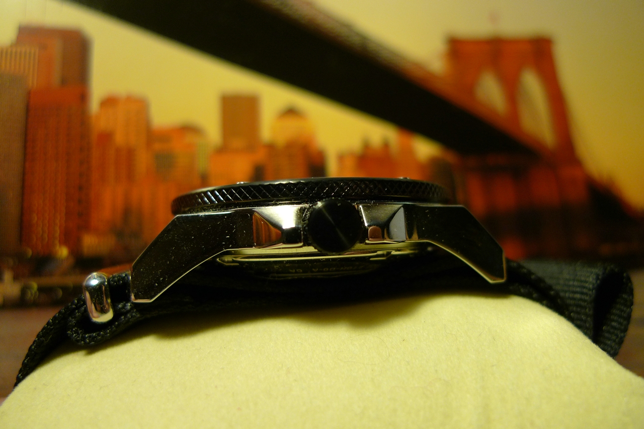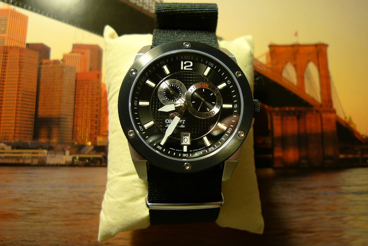 Вместо родного каучукового ремешка установлен ремешок нато.