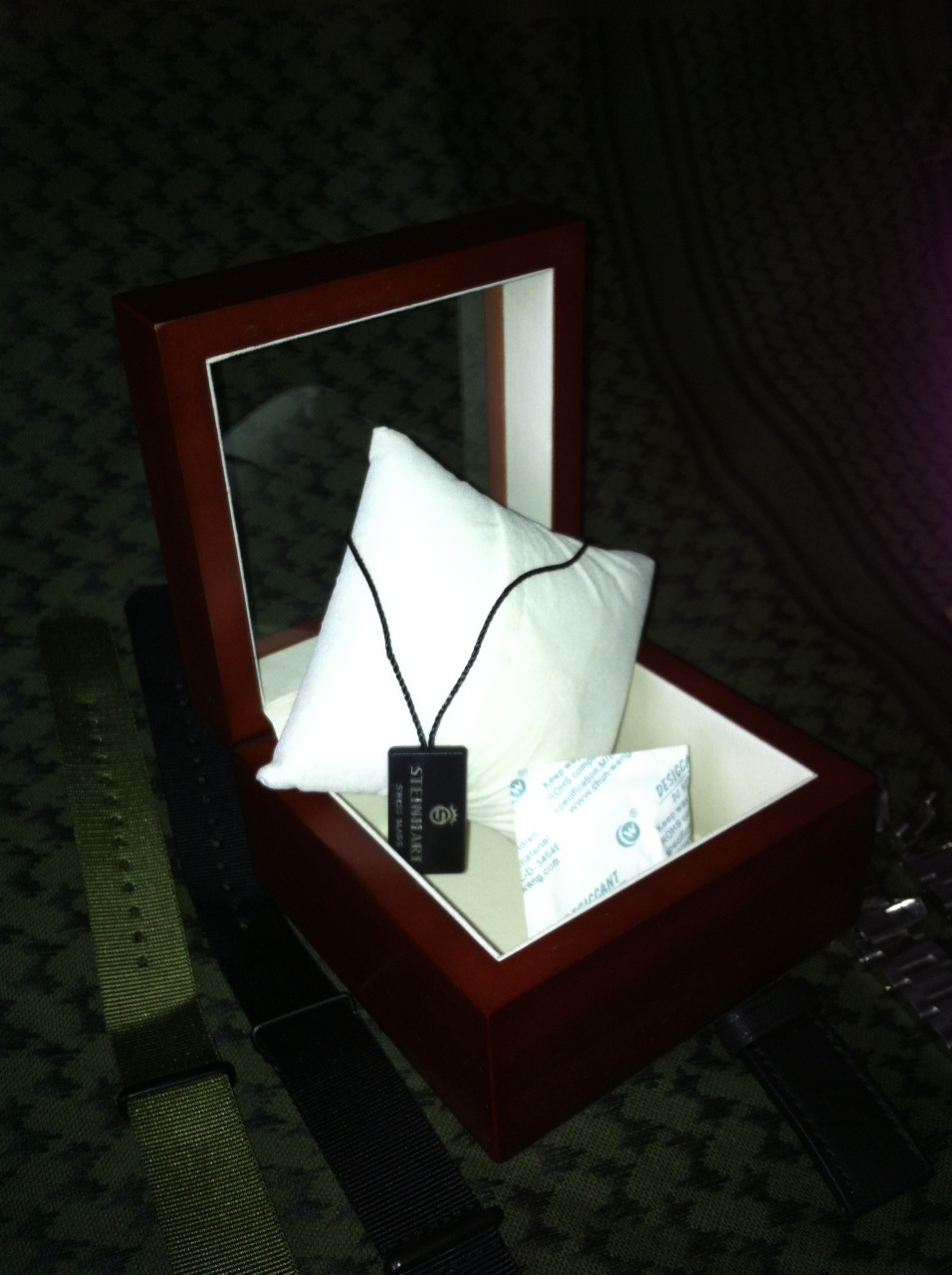 Пара нейлоновых ремешков НАТО… по мне так что то ну оооочень утилитарное на внешний вид. На охоту, на пикник с гулящими девами, на пострелушки – в тему. Может быть. И сохнет раньше, чем намок и если ободрался – антуража только добавится. В цвете «олива» – очень даже неплох. Ну а чёрный, ожидаемо, по аналогии с кожаным - показался невнятным.