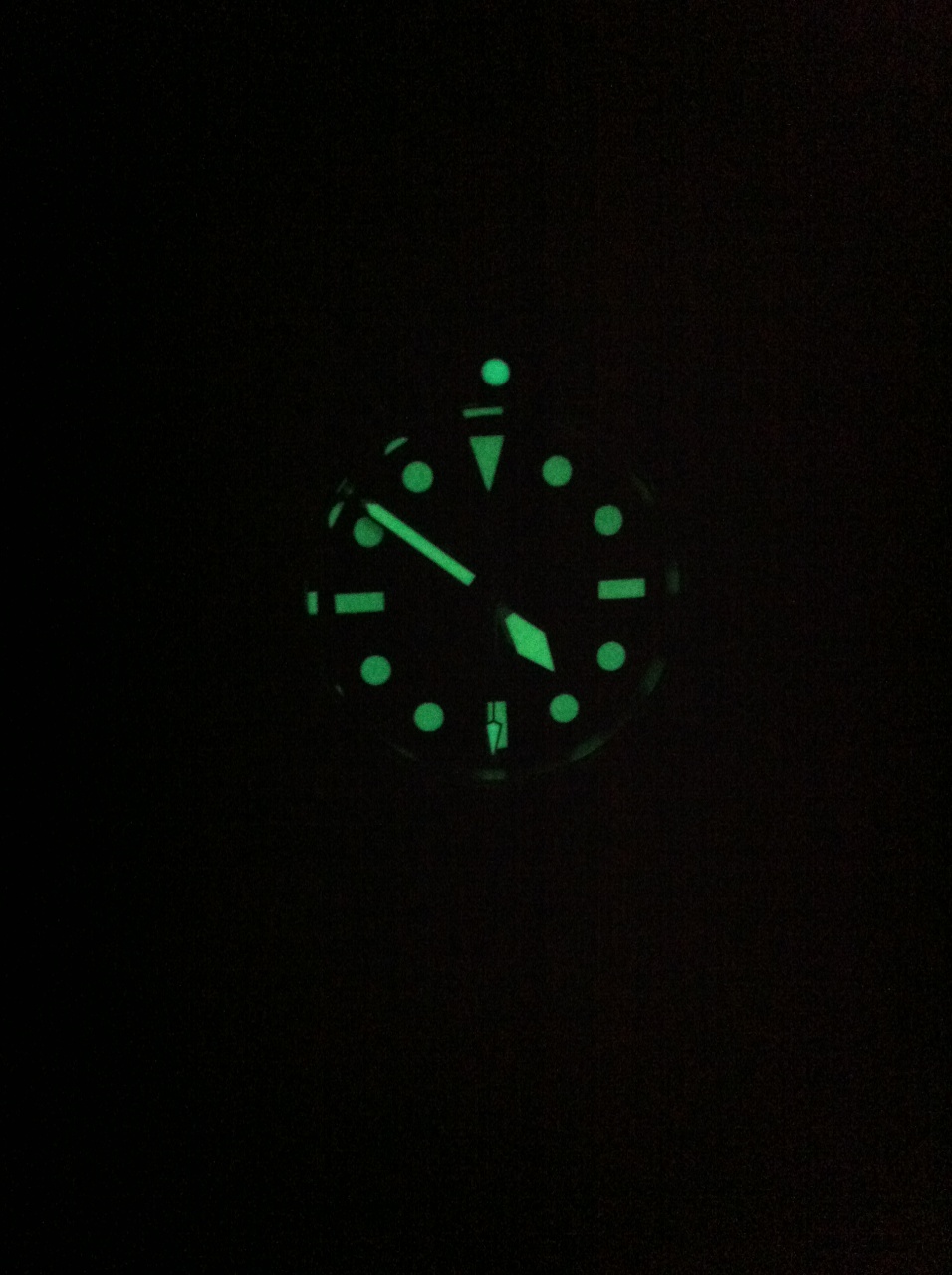 Люминофор забавный. Когда завалился отдрыхнять… чутка огорчился – свечение слабоватое, матовое какое то. Привык, что уж поначалу то вместо фонаря должен быть, чтобы до утра дожить. Но поутру огорчение пропало – светились и метки и стрелки если и тусклее то немного. По ощущениям свечение «неяркое, но стабильное». Мне лично это показалось правильным и оказалось более чем достаточно для того чтобы комфортно считывать показания. По времени засек разок – с 21 часа до 6 утра – устойчиво, отчётливо читаемо.