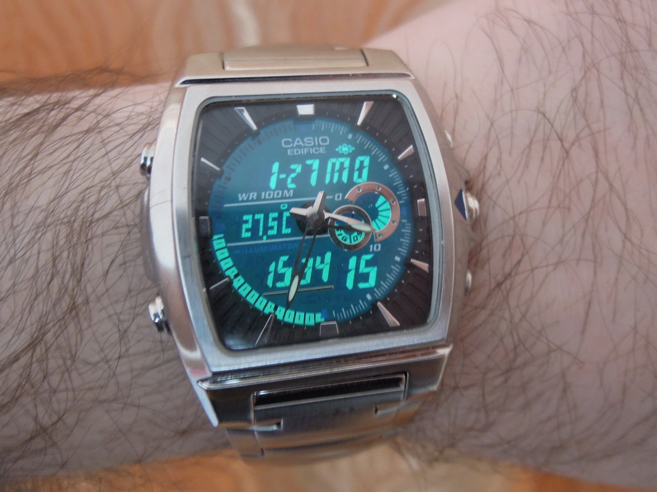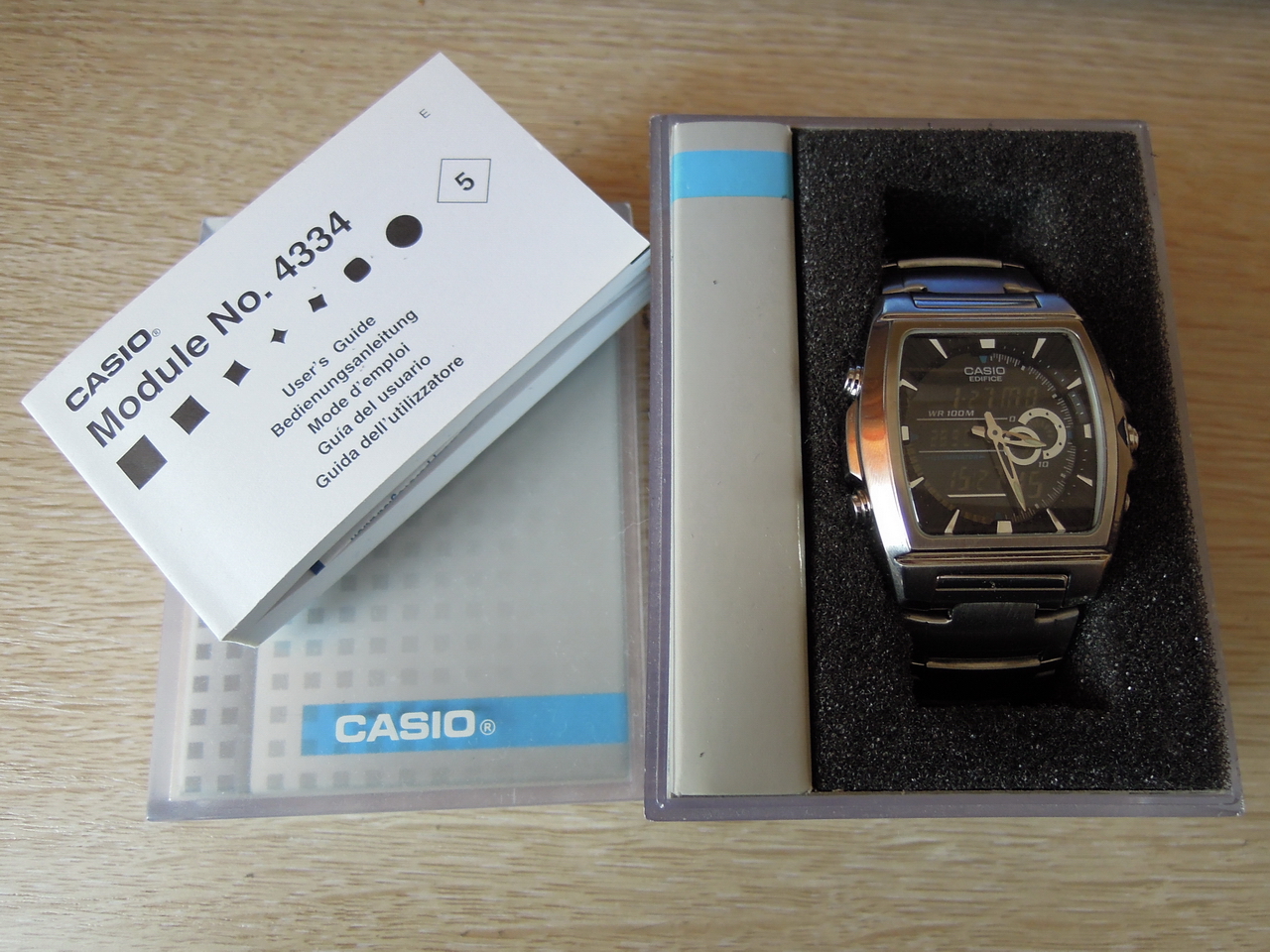 Из достоинств можно отметить надежный и многофункциональный модуль 4334, яркую электролюминесцентную подсветку, хорошую водозащиту (в часах можно купаться, без погружений с аквалангом), стекло хоть и минералка, но царапины совсем не собирает!