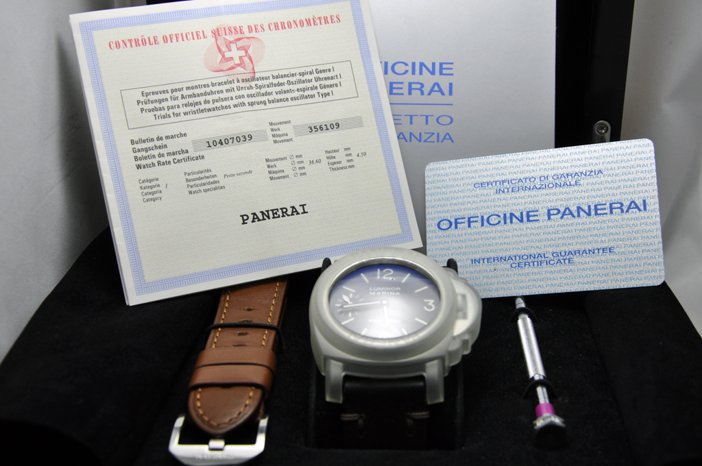 - Механика с ручным заводом, калибр Panerai OP XI, сертифицированный хронометр COSC