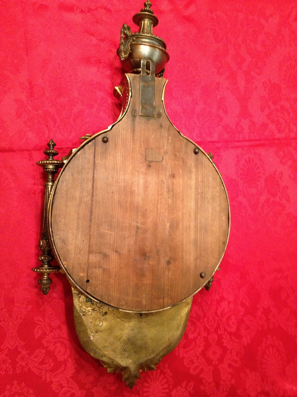 Добрый день форумчане! Привез себе из Франции Вот эти настенные часы. Дома их мне обслужили и запустили. Идут хорошо с боем и главное точно! Мастер сказал, что механизм стоит французский с маятником ЛеРой. Продавец говорил, что часы где-то 1870 г. Больше я ничего не понял. Корпус очень тяжелый из желтого металла, задняя стенка деревянная. Корона и все видимые части тоже металлические. Цифры на циферблате накладные, четверка написана как четыре палочки.