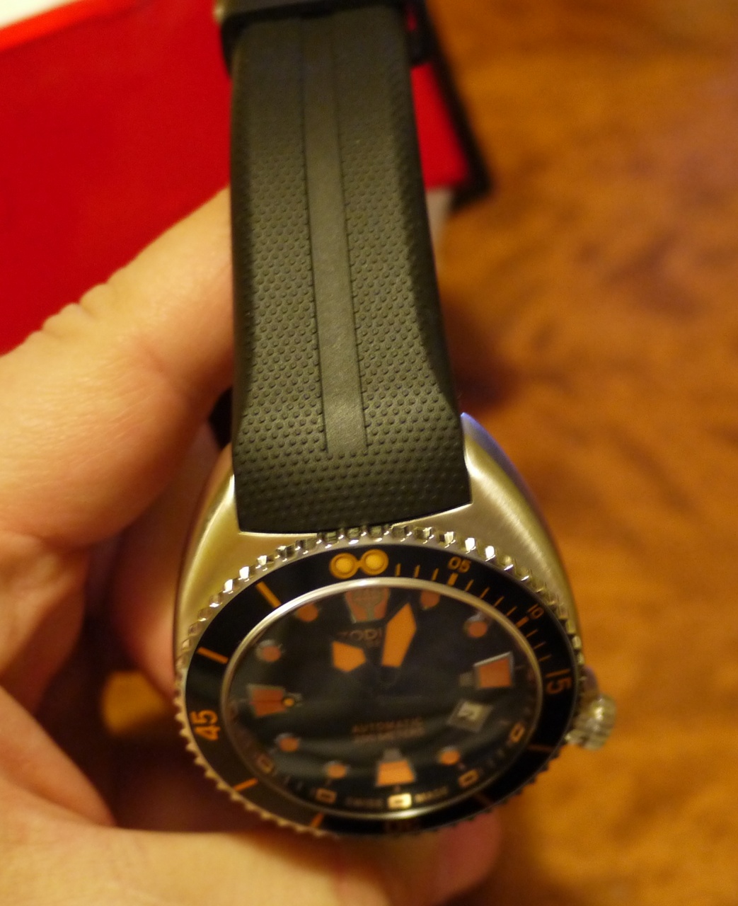 - Оранжевые стрелки и часовые маркеры с нанесенным люминисцентным составом.