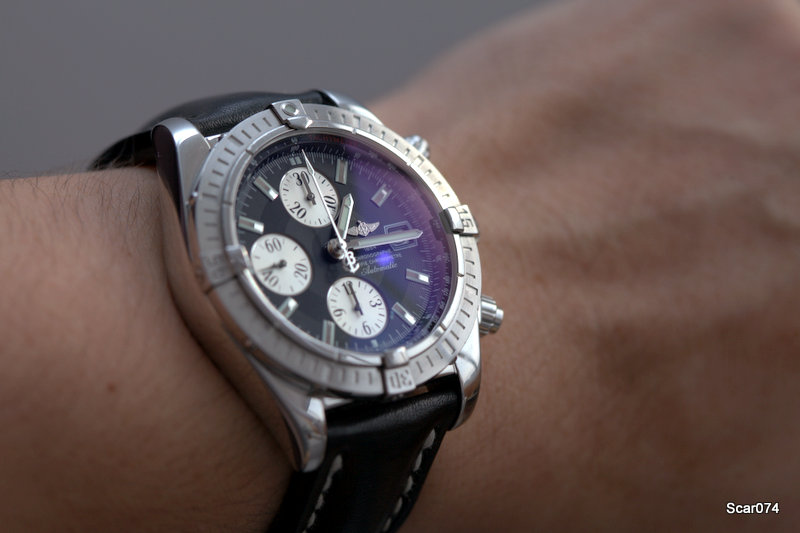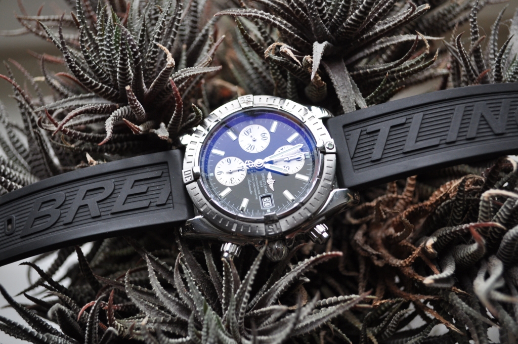 До Breitling Chronomat Evolution я долгое время носил часы марки Rolex, и периодически мне очень не хватало возможности одеть на них кожаный ремень. В часах Breitling все это предусмотрено производителем, во всяком случае, на данную модель кроме браслета, существуют каучуковый и кожаный браслет, причем кожаный возможен двух видов – черный аллигатор и черный гладкий. Застежки также предусмотрены разных типов: обычный «шип» украшенный логотипом, раскладная (очень качественная и удобная) для кожи и раскладная для каучука. Стоит ли говорить о том, что часы находятся в luxury ценовой категории и соответственно все комплектующие и аксессуары поражают воображение своими расценками, про цены в РФ нечего и говорить, они просто «за гранью добра и зла» (с).