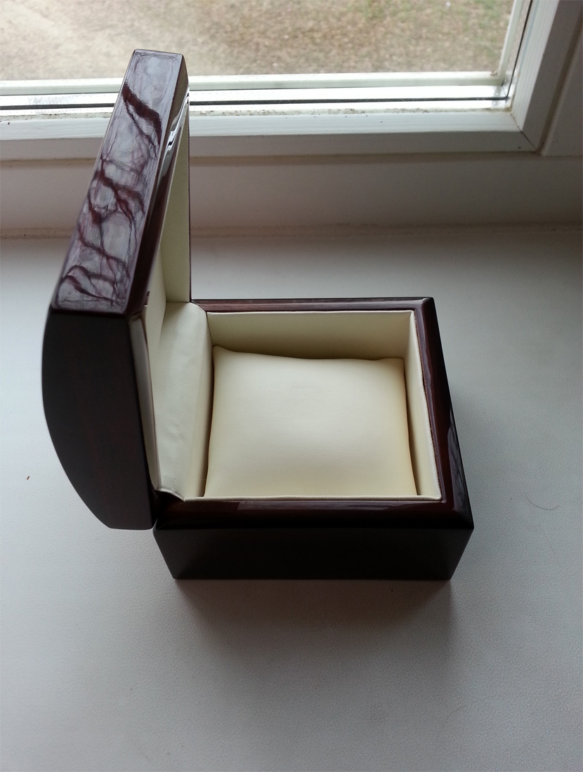 Стекло в идеальном состоянии (без царапинок). Корпус и браслет в отличном состоянии и имеет лишь несколько микроцарапин. Комплект полный, в частности, имеется оригинальный шикарный ларец из красного дерева. Браслет на запястье 18 см. будет сидеть хорошо (на моем 17.5 см. в свободное пространство лезет больше одного пальца).