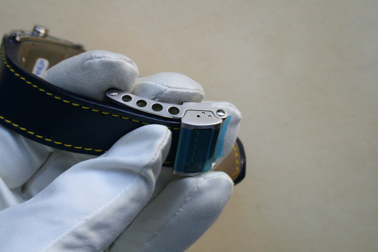Ремешок: из кожи синего цвета, снабжен раскладной застежкой