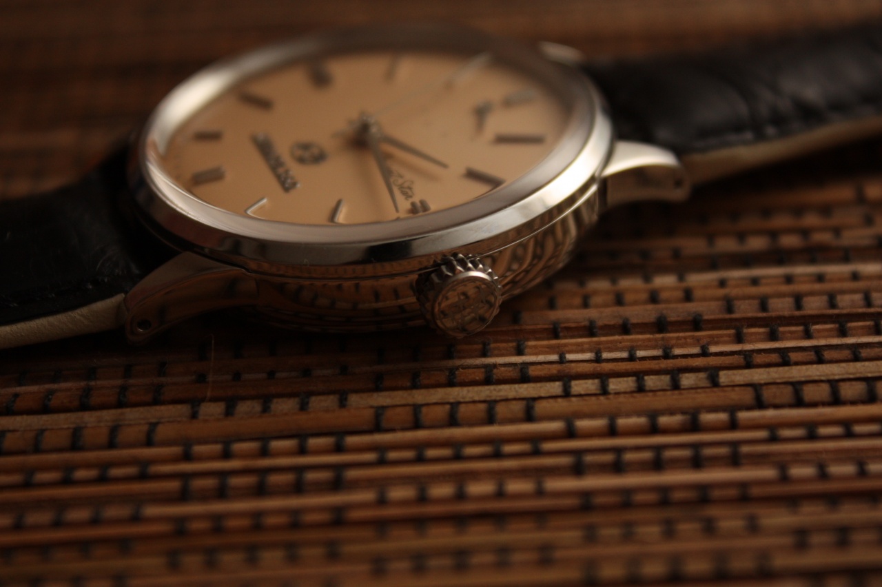 Сапфировое стекло, Ручка, кожаный ремешок с баклей Orient Star, красивейший циферблат цвета топленого молока или ряженки, накладные метки и логотипы , индикатор запаса хода. Сделано в Японии и для Японии
