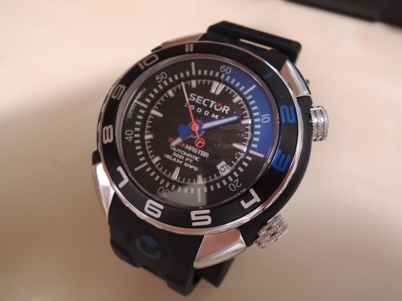 Данная модель является самой верхней в линейке дайверов Sector, и, что особенно важно, полностью произведена в Швейцарии, в отличие от более низких моделей.