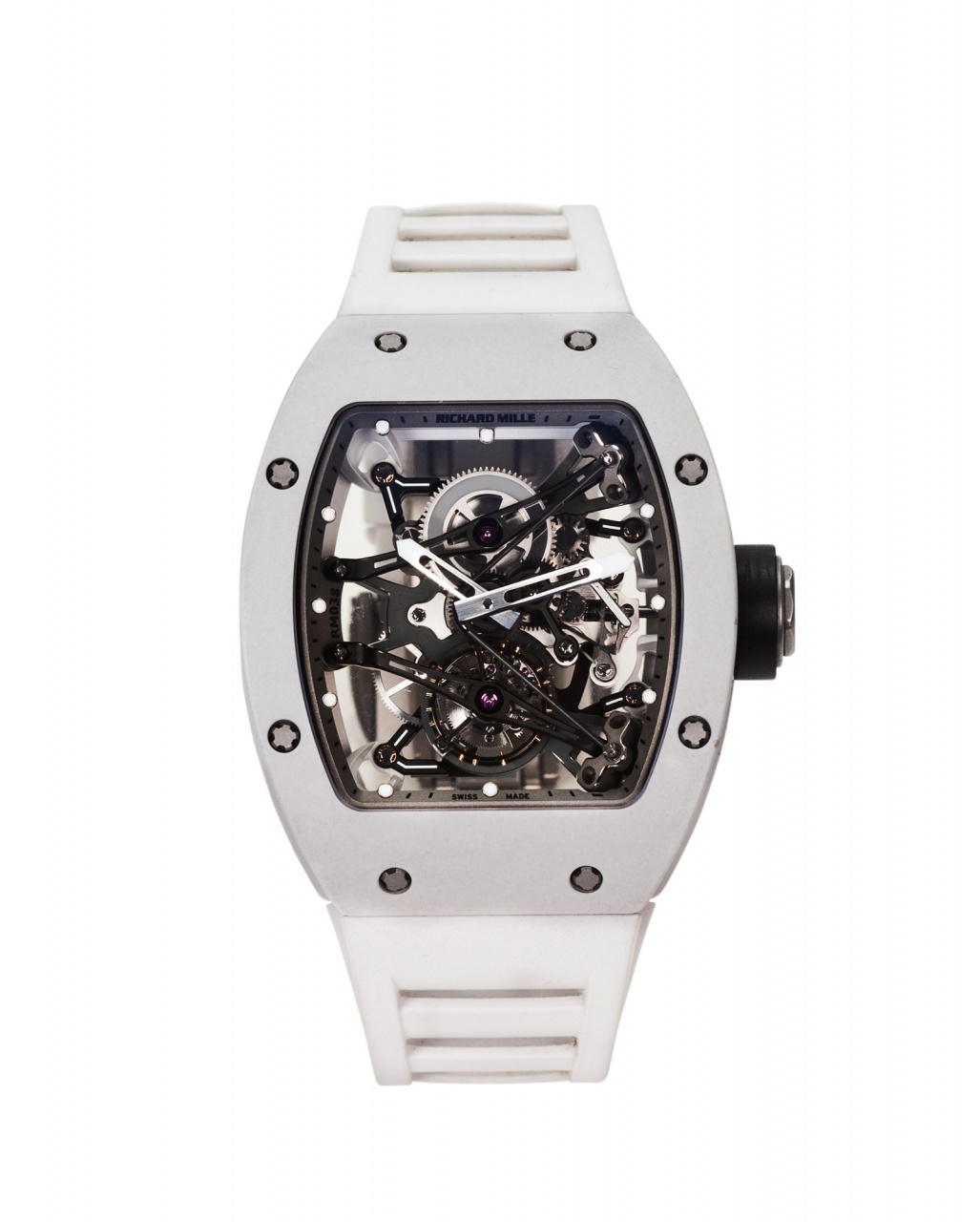 Richard Mille RM038 AL MG PROTO 03 (Лот 231), или часы «Tourbillon Prototype» бочкообразной формы из магния. Ориентировочная цена продажи составляет 257,824 – 386,736 долларов. Модель обладает видимым турбийоном с минутным шагом, 48-часовым запасом хода и титановой двойной раскладывающейся застежкой Richard Mille. Часы дополняются футляром, гарантией, инструкцией и набором клюшек для гольфа в чехле.