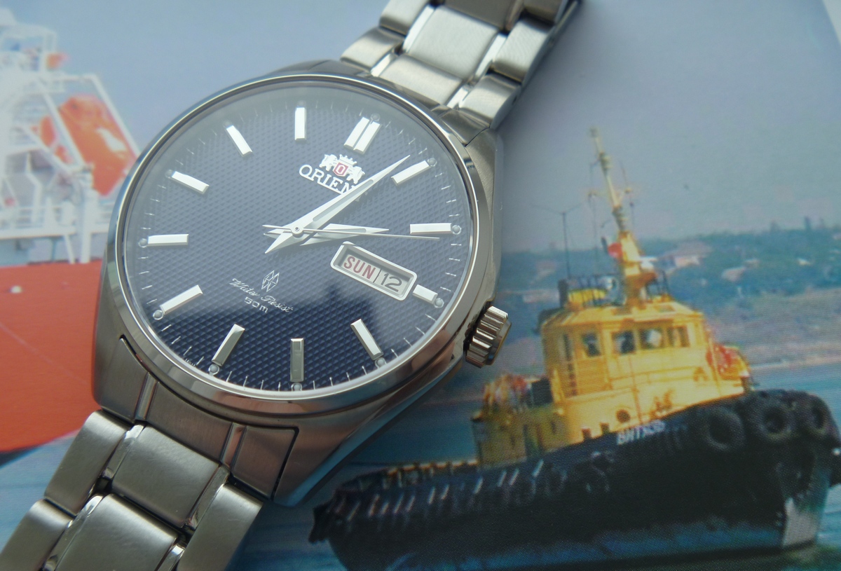 Небольшая предыстория покупки. Однажды зашёл в часовой магазин, и увидел рекламу casio edifice и технологии радио-синхронизации. Технологии casio произвели на меня большое впечатление. Я заинтересовался часами. После изучения edifisof перешёл к g-shock, потом к аналоговому кварцу, потом к механике, потом обратно к g-shock. И так несколько кругов. В промежутке купил недорогие электронные timex, чтобы понять буду ли вообще я носить часы. Незаметно пролетел год. Было потрачено очень много человеко-часов на просмотр форума, ebay, amazon и местных интернет магазинов, и посещение физических магазинов (очень полезно). Как правило останавливался на g-shock но всегда отталкивала стоимость. Перенастраивался на механику, но отталкивала точность. Единственное в чем определился точно - это в желании иметь аналоговый дисплей. На нном круге выбора часов остановился на casio gw-3000, которая на мой взгляд самая лучшая по совокупности красота/функции/стоимость. Хотел заказывать, но чувство, что меня обдирают остановило меня. Я задался вопросом - это технологии casio такие дорогие или все таки дерут. После изучения линеек g-shock MTG и MRG решил что дерут. И вообще забыл о часах. Однажды случайно примерял механику и в очередной раз задумался о механике. Супер точность редко нужна. Из моей практики: в конце смены люди идут в табельную за пропусками, раньше идти нельзя. Иногда начинается спор у кого часы точнее в котором побеждает не обладатель самых точных часов, а обладатель самого наглого характера. Самый большой фактор необходимости высокой точности - это отношение к этому фактору. Можно представить, что каждую неделю нужно подстраивать часы, и это представится большой обузой. А можно посмотреть на это с другой стороны и представить, что раз в неделю нужно уделить своим любимым часам немножко внимания и позаботится о них. Для себя решил, что точность все таки относительна и взялся за поиски механики. В механике я разбирался. Больше всего мне нравились Rolex Air King: простым дизайном подходящим как мне кажется под любую одежду. Этакая ровная классика. Денег таких нет, за брендом никогда не гонюсь, только за качеством. Поэтому Orient. Из-за бугра заказывать не хотелось, да и цены на ebay и amazon мне показались не намного ниже. Пару дней поисков, и я нашёл их у одного продавца в интернете. На следующий день заказал, оказалось что успел забрать последние.