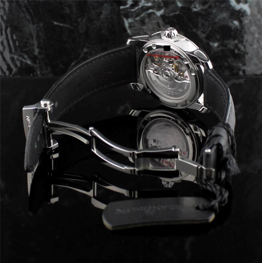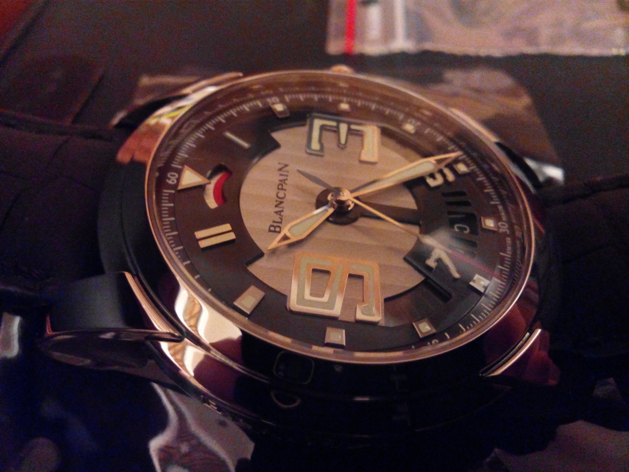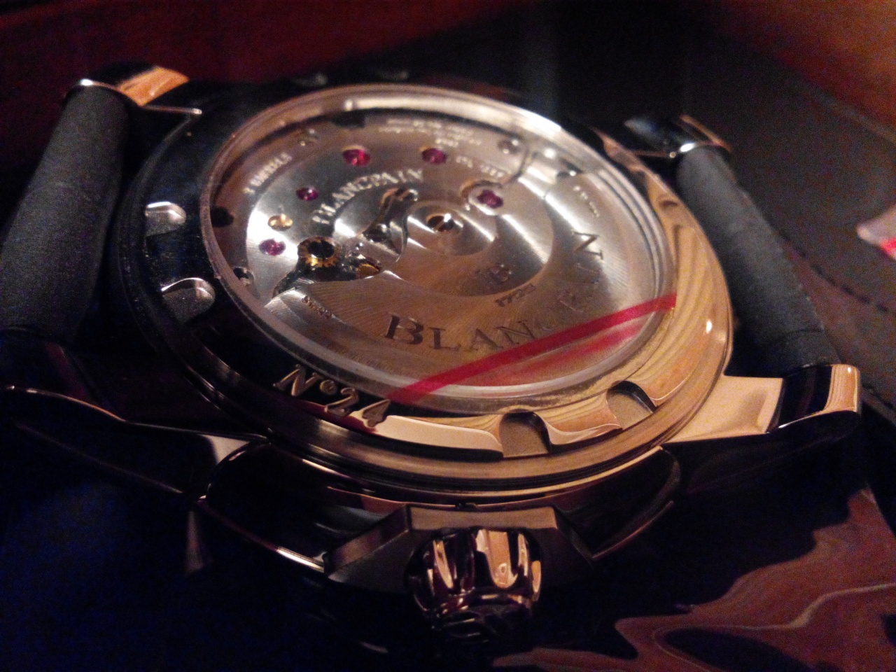 Механизм: Механика с автоподзаводом, калибр Blancpain 13R5 (36 камней, 3 заводных барабана, титановый баланс, золотые регулировочные винты, 243 компонента)