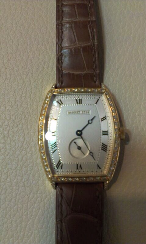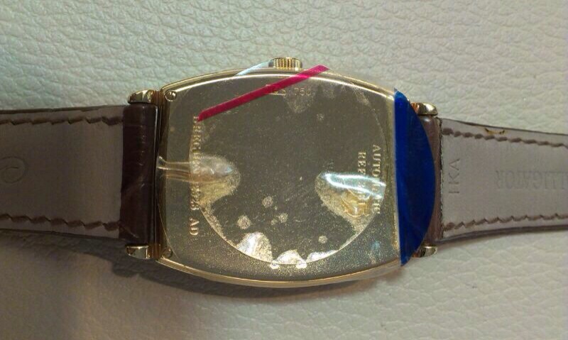 Часы Héritage из 18-каратного розового золота. Изогнутый в двух направлениях корпус в форме "бочка". Изогнутый в двух направлениях циферблат из посеребренного 18-каратного золота с гильошированным вручную узором. Автоматический механизм с малой секундной стрелкой в положении "6 часов". Безель и крепления для ремешка украшены 56 бриллиантами (около 1,869 карата). Водонепроницаемые 30м