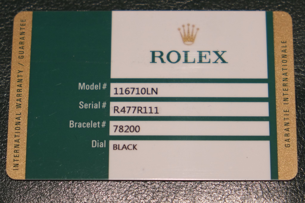 Как всегда, совершенно новые, в плёнках, часы с полным комплектом упаковки, документов и международной гарантией официального дилера Rolex (пластиковая карта нового типа с магнитной полосой), датированной текущим месяцем.
