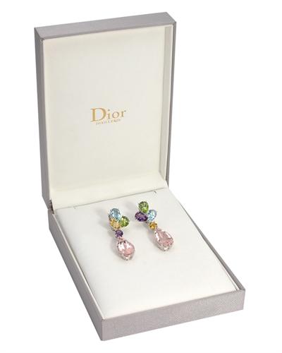 Яркий комплект кольцо и серьги DIOR из белого золота.