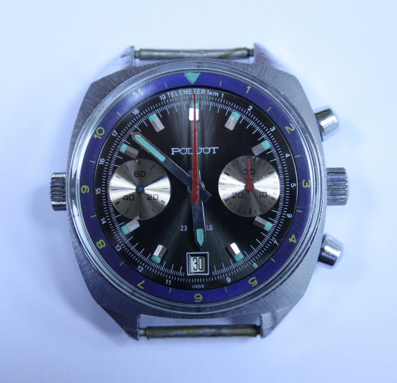 Гражданский хронограф POLJOT (Полет) в хромированном нейзильбере (задняя крышка нерж), СССР, 80-е.