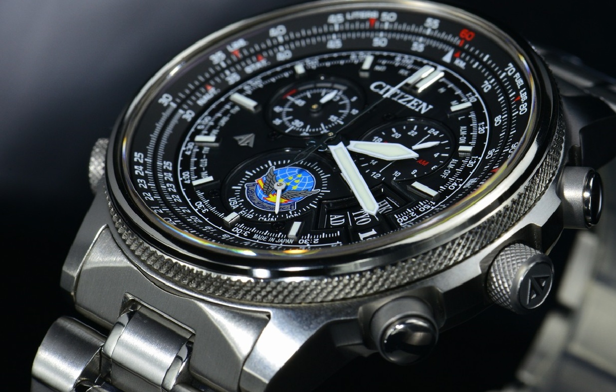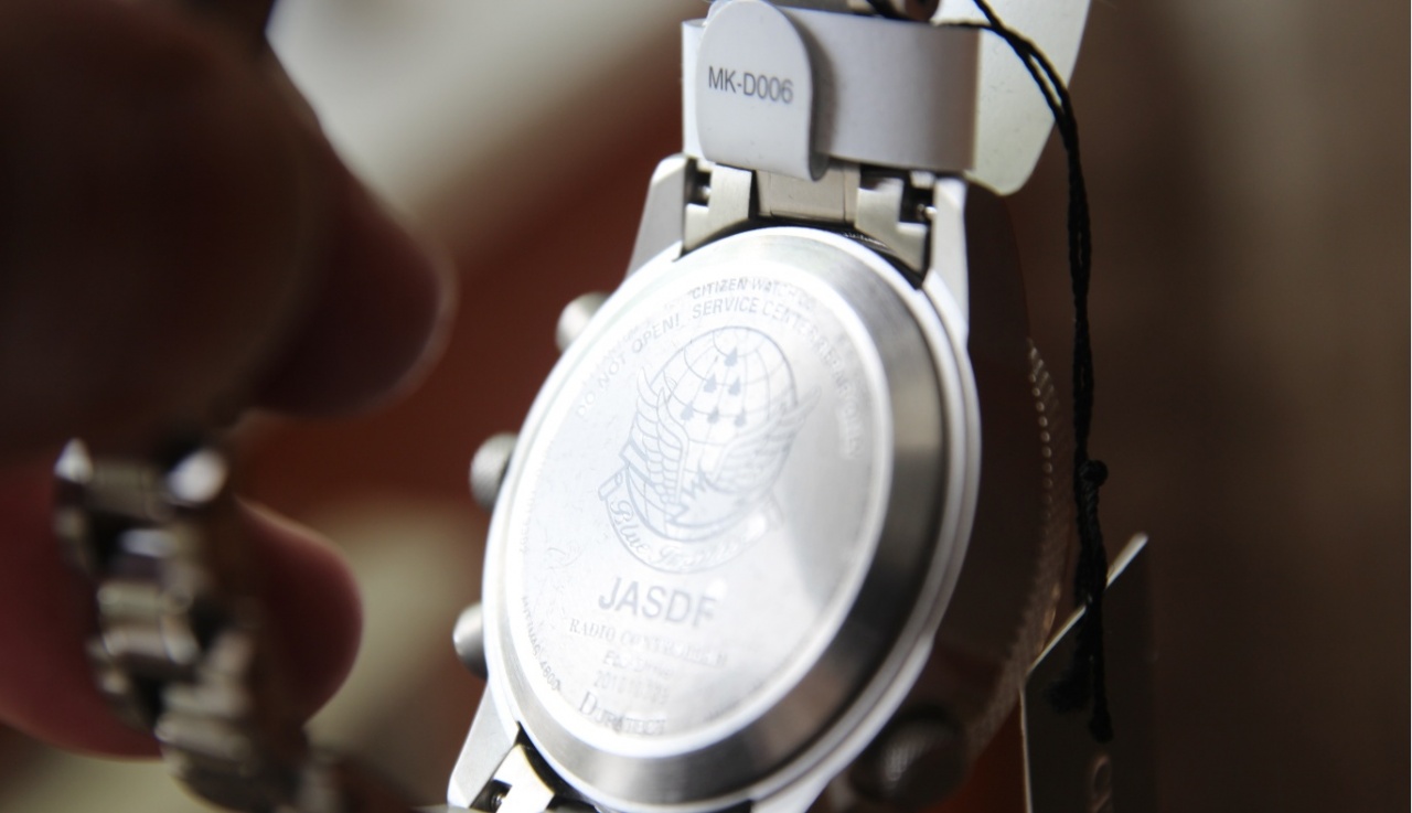 На черном циферблате нанесён герб « Blue Impulse» японской пилотажной группы самообороны, он так же вытравлен на задней крышке часов.