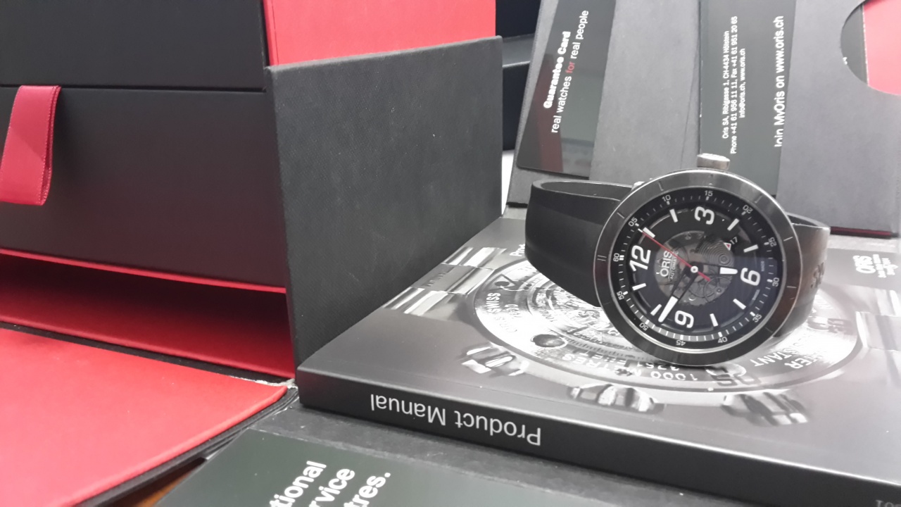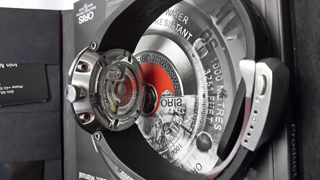 Полный комплект. Механизм Oris 733, на базе SW 200-1, диаметр 43 мм, многокомпонентный корпус из нержавеющей стали, керамический ободок, стекло сапфир.