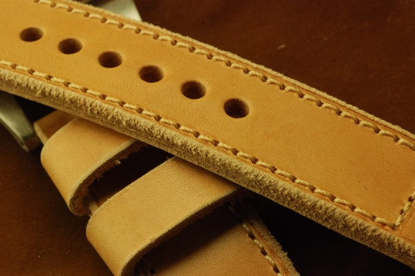 2. Italian Light Desert Sand with ecru box stitching with Poseidon buckle