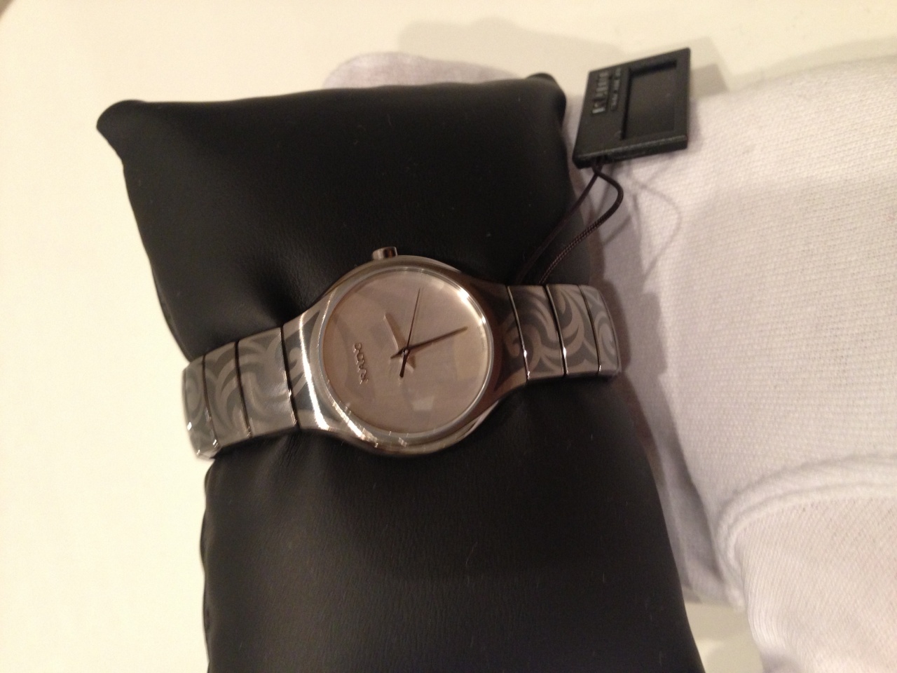 Браслет: устойчивая к царапинам высокотехнологичная сатинированная керамика с гравировкой, титановая застежка с блокировкой.