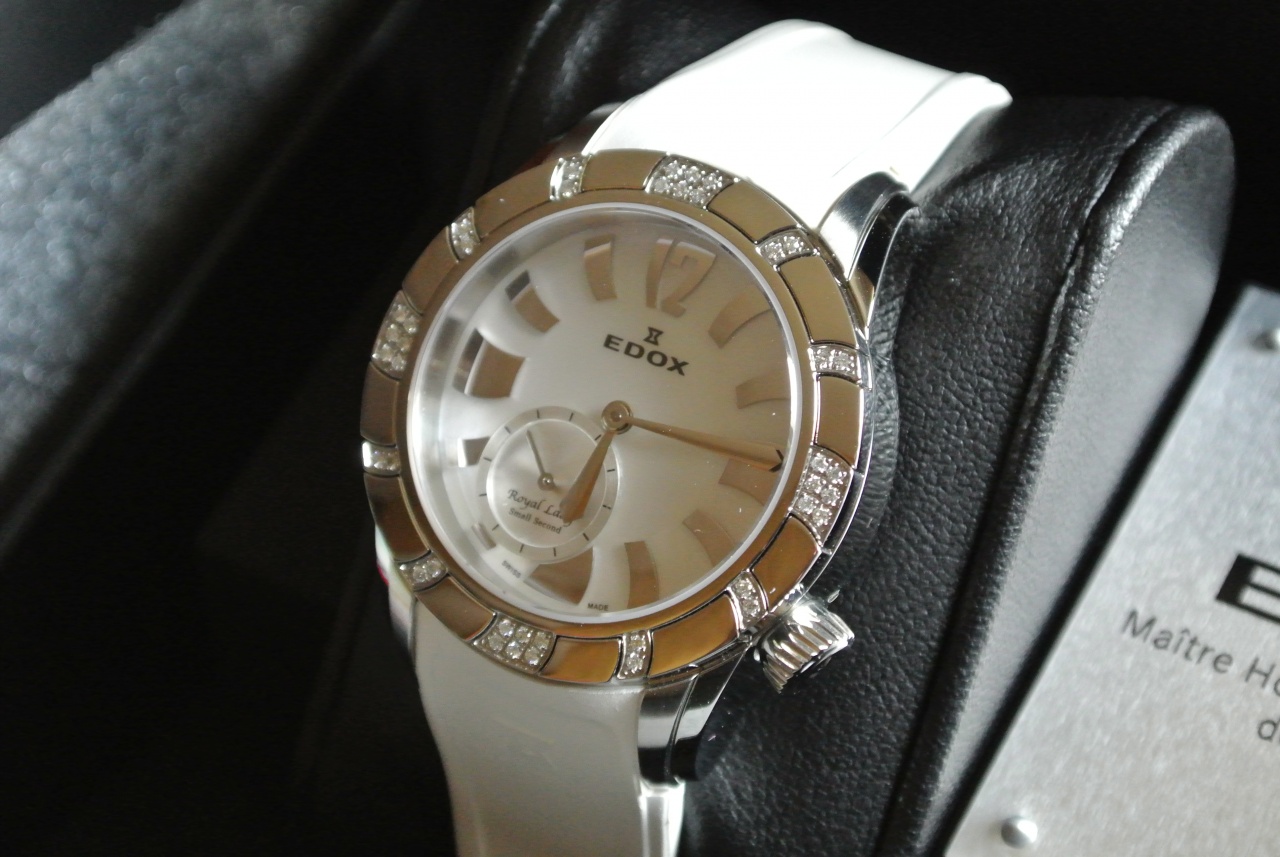 / ЖЕНСКИЕ / EDOX ROYAL LADY / 28 БРИЛЛИАНТОВ / ПЕРЛАМУТР / КАУЧУК /