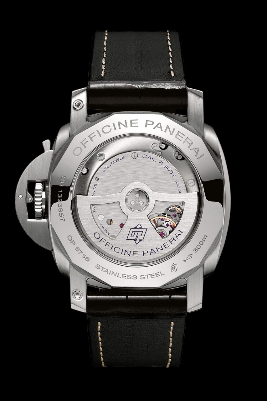 Механизм:Механика с автоподзаводом, эксклюзивный калибр Panerai Р.9002, 28 камней. Балансир Glucydur®, совершающий 28 800 полуколебаний в час. Противоударное устройство Incabloc®. Запас хода 3 дня.