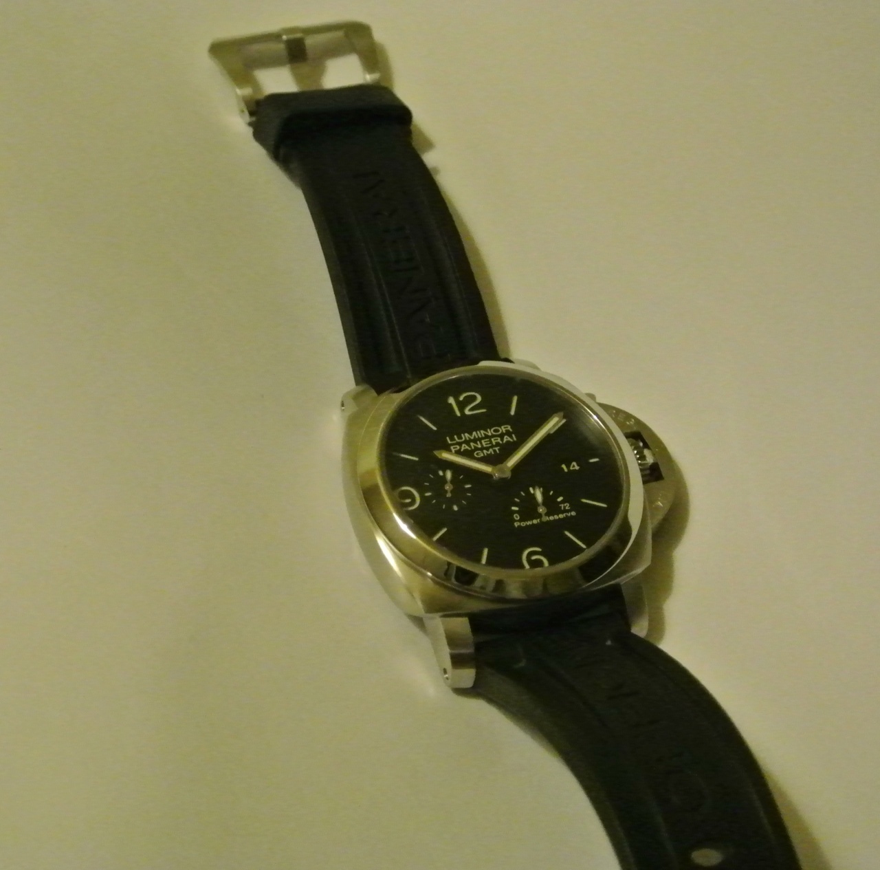 Ремень: Фирменный ремешок из аллигатора, черный с прострочкой ,в комплекте также ремень PANERAI из каучука , с застежкой из стали.