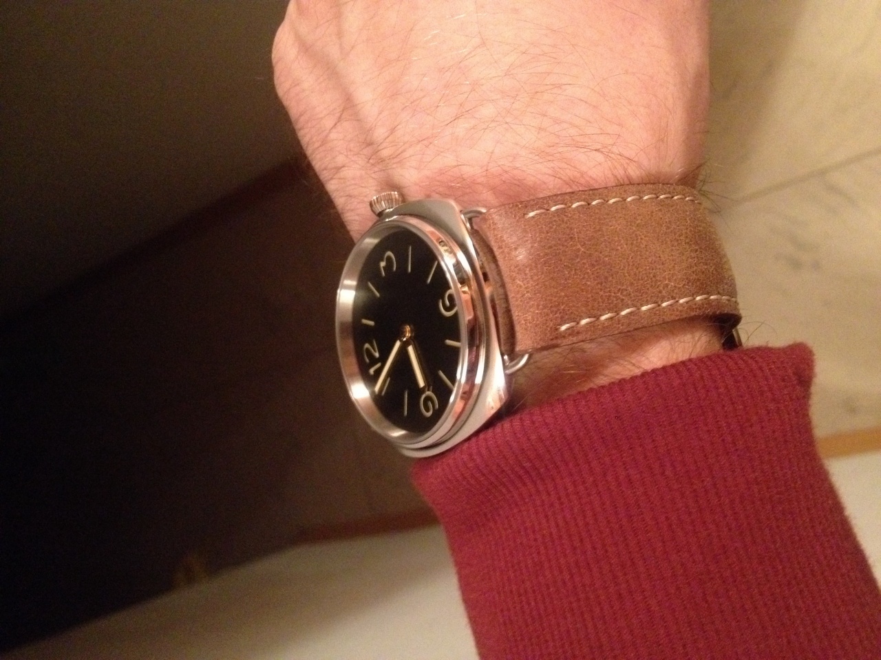 Band: Thick leather strap, knife edge buckle MOD engraved.