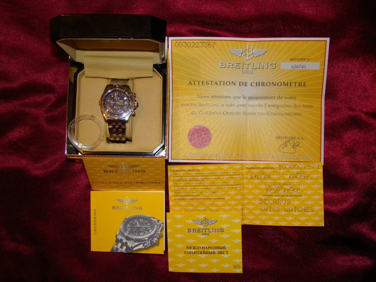 Продам Breitling Chronometre Crosswind b13355. Часы куплены у оффициального дилера в Минске (Ziko), идеальное состояние (9/10), коробка, документы. За 3200 у.е. с торгом. Продавать не хочу, но приходится. Минск.