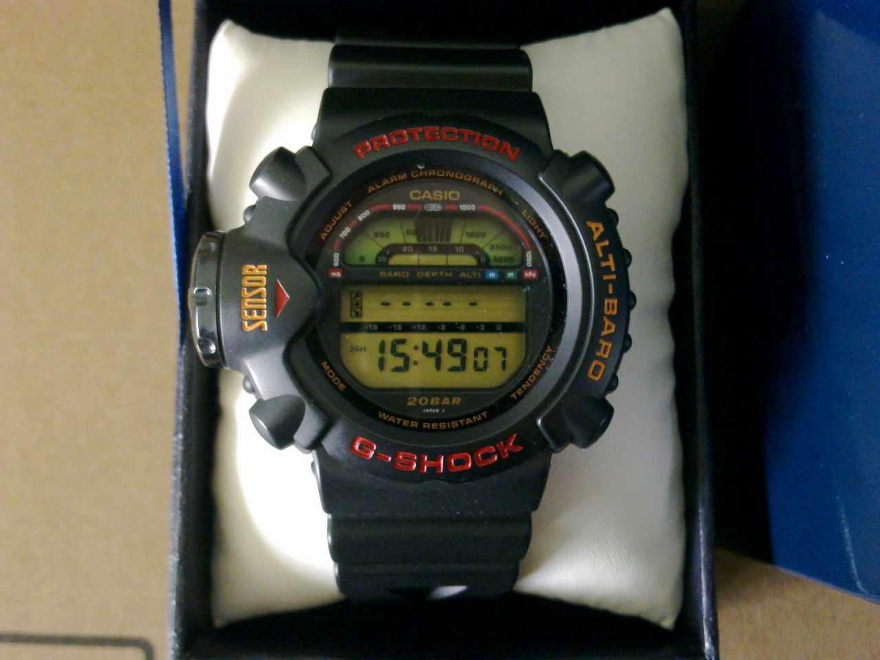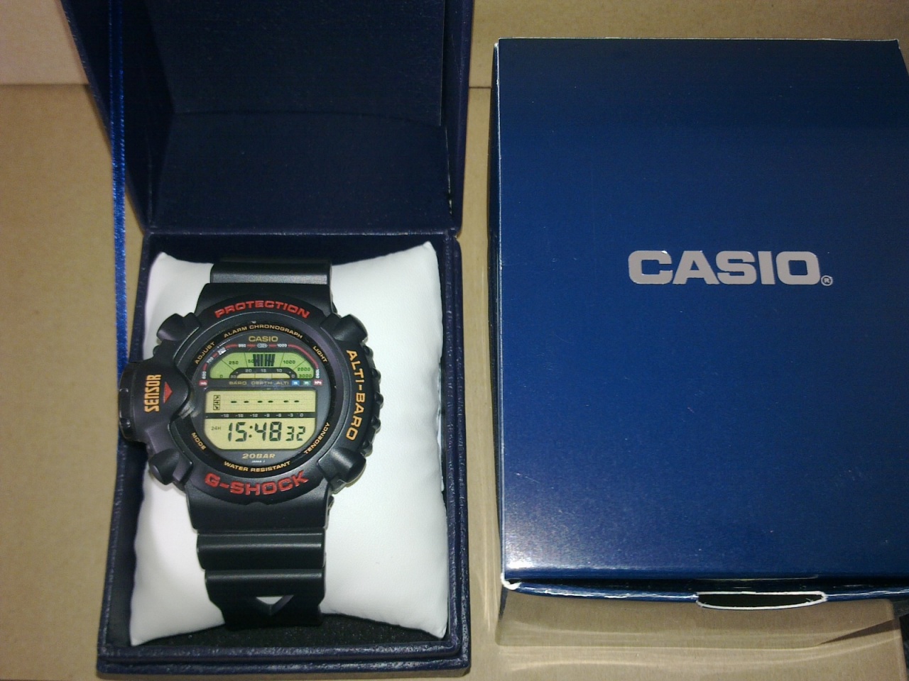 Водонепроницаемые 200 метров (20 атмосфер), противоударность G-Shock.