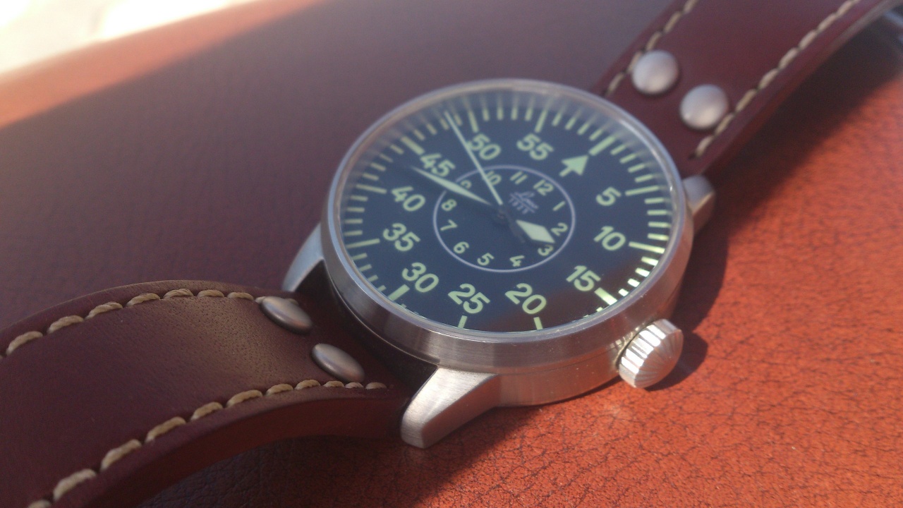 Культовые часы времени Второй Мировой войны. Это Beobachtungsuhren (B-Uhr или ещё говорят Flieger), что переводится, как «часы воздушного наблюдателя» которые в 1930-х и 1940-х годов были неотъемлемой частью пилотного оборудования. Часы заказывались с официального сайта.