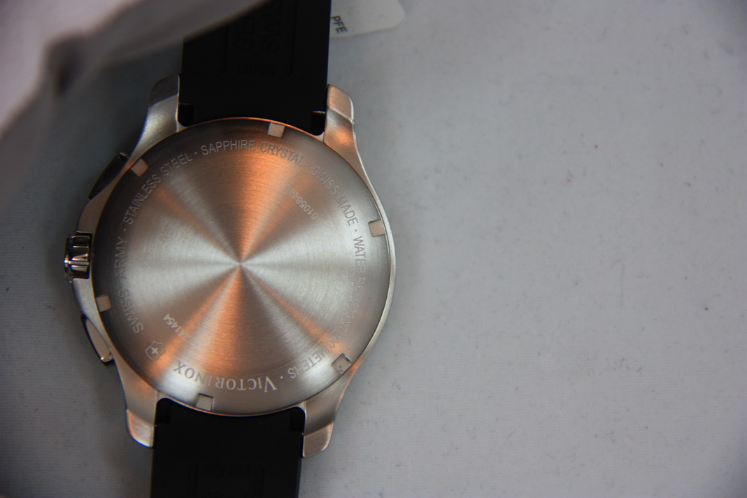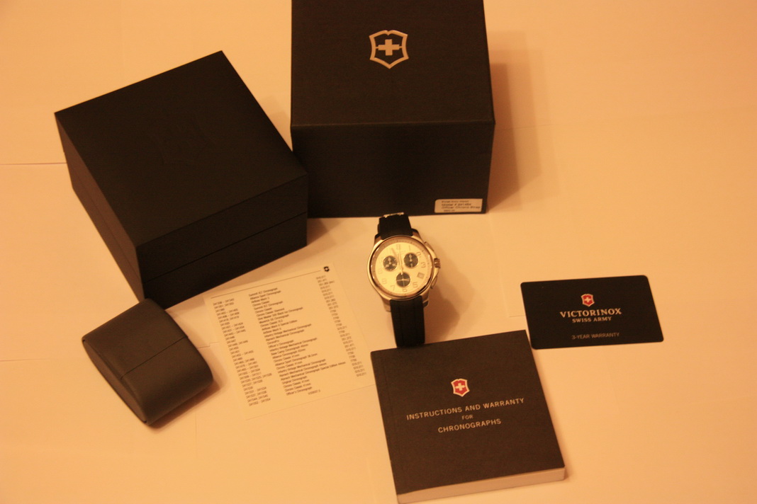 Комплект: часы, коробка, шкатулка, инструкция, гарантийная карта, бирка, таблица калибров Victorinox.