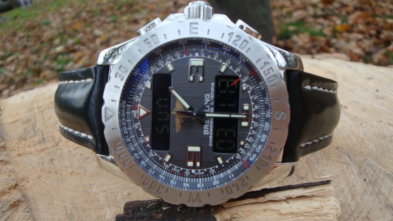 Подлинный инструмент пилота. Функциональность, читаемость, эргономичность, простота в использовании.хронограф с выводом сотых долей секунды с функцией промежуточных засечек времени, обратный отсчет, звуковой сигнал, второй часовой пояс с независимым звуковым сигналом, всемирное координированное время и вечный календарь. На большом циферблате располагаются стрелки увеличенных размеров и имеется система эффективной подсветки, совместимой с очками ночного видения, позволяющей снимать показания в ночное время.Обладающий сверхвысокими эксплуатационными характеристиками механизм SuperQuartzTM, который является в десять раз более точным, чем стандартный кварцевый механизм.Подчеркнутая смесь силы и стиля, созданная для профессионалов и для людей, стремящихся к сильным ощущениям. Документы, коробка.