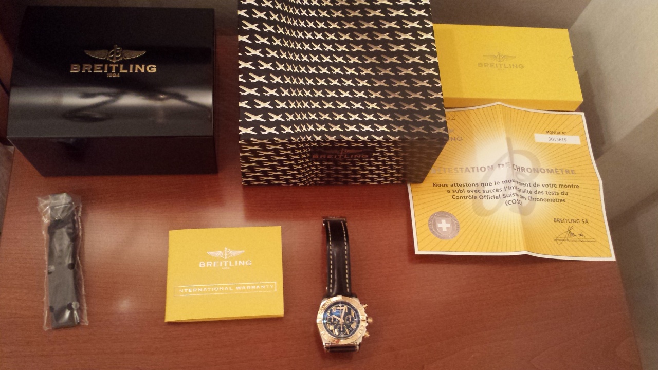 В полном комплекте, коробка, документы, заполненная гарантийная карта (международная гарантия 5 лет с даты покупки), сертификат хронометра, два оригинальных ремня – кожа и каучук (новый, в пленке).