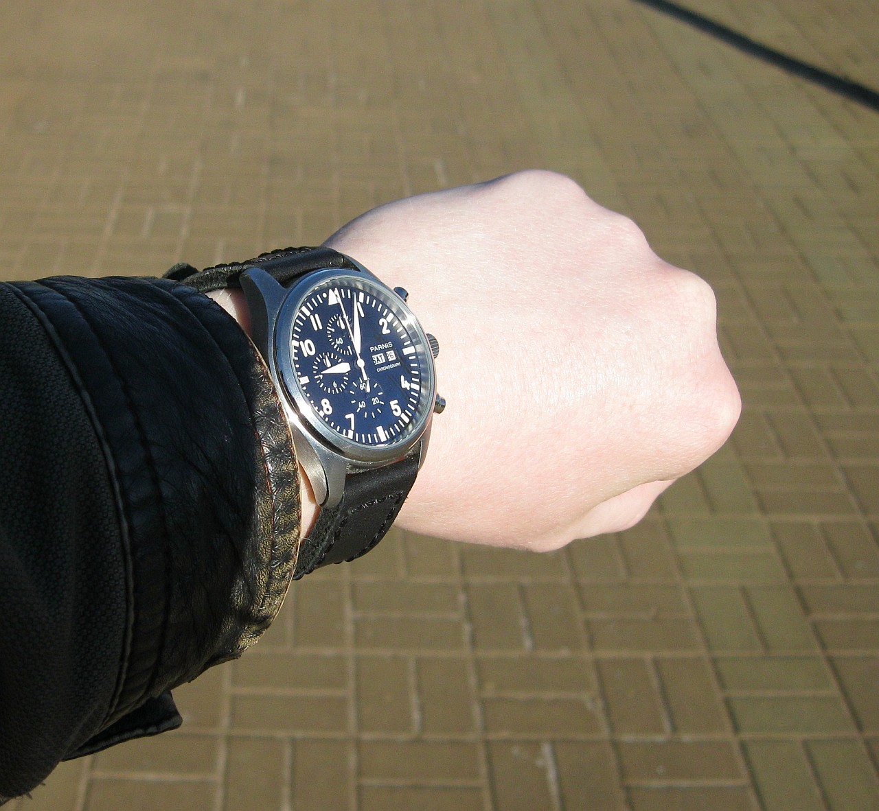Давно хотел часики подобного дизайна и вот, решил купить хомаж на ибее, так как стоимость оригинальных iwc находится далеко за пределами разумного (по моим представлениям), да и стоимость ближайшего "аналога" от steinhart тоже немаленькая. К тому же steinhart механика (для меня это плохо