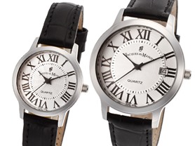 Материалы - и там и там хирургическая нержавейка, кварцевые механизмы от Ronda, красивые текстурированно-гильошированные традиционные циферблаты. У мужских окошко даты на "три часа".