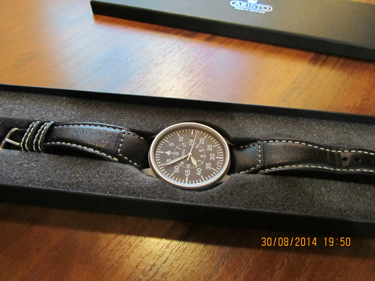 Aristo пилот 3H80. Покупались в мае 2014 г. через магазин Kingowatch. Состояние отличное. Заменен элемент питания примерно недели 2 назад. Точность хода +1-2 сек/месяц. Стоит новый ремешок Fluco Pilot (заказывался отдельно)