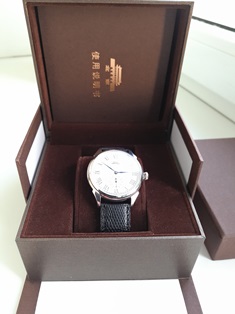 Часы выглядят очень достойно, цифер - простой эмалевый с римскими цифрами, с серебряным лого Тяньаньмэ́нь. Стрелки Мун, синего воронения, на мой взгляд - мелковаты, я бы их заменил на аналогичные, покрупнее. Стекло - сфера, сапфир, не бликует, хотя антиблика не видно. Заводная головка - крупная, удобная.