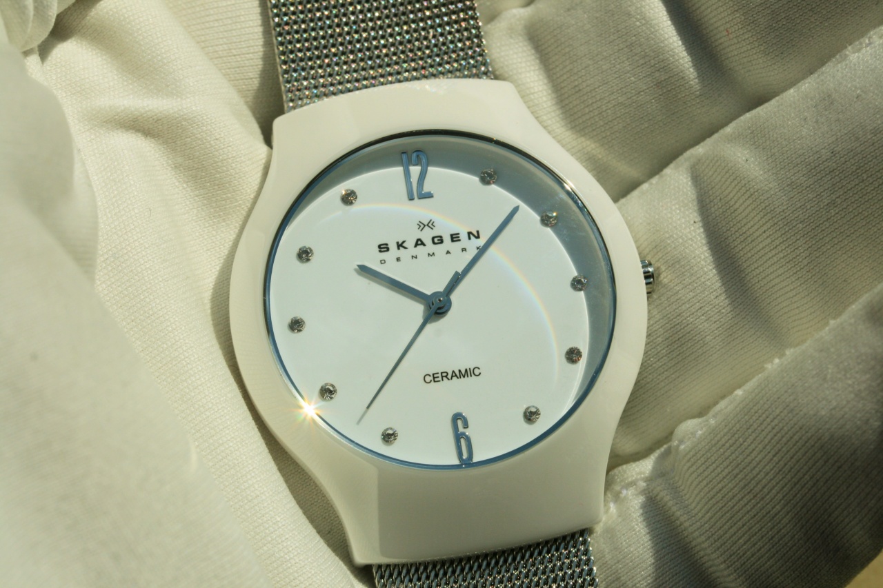 ~~~ [женские] SKAGEN CERAMIC ** белая керамика ** SWAROVSKI ** миланский браслет ~~~