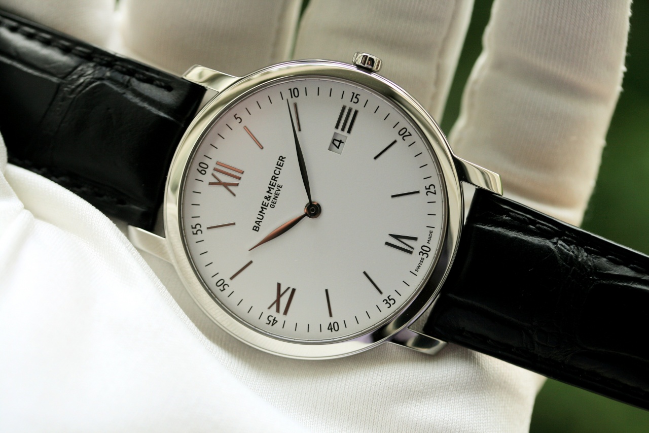 < < < [тонкие - 6 мм] BAUME&MERCIER CLASSIMA ** светлый цифер ** черная кожа > > >