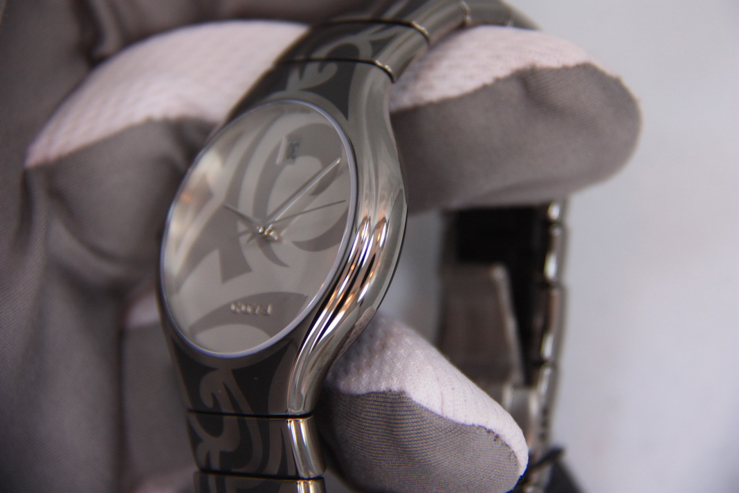 глянцевая керамика с гравировкой, титановая застежка с блокировкой.