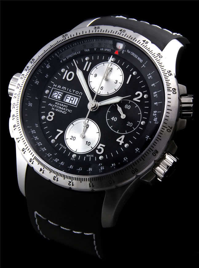 Одна из топовых моделей Hamilton. В представлении, пожалуй, не нуждаются, неоднократно мелькали на руке героев как зарубежного, так и российского кинематографа. Даже здесь, на форуме, им посвящена не одна тема. Внутри сверхнадежный Valjoux 7750 с усложнениями (пять кнопок вместо обычных трех). Первые в мире часы с устройством для точного расчета угла сноса, которое позволяет пилотам учитывать во время полета боковой ветер (в жизни пригодится