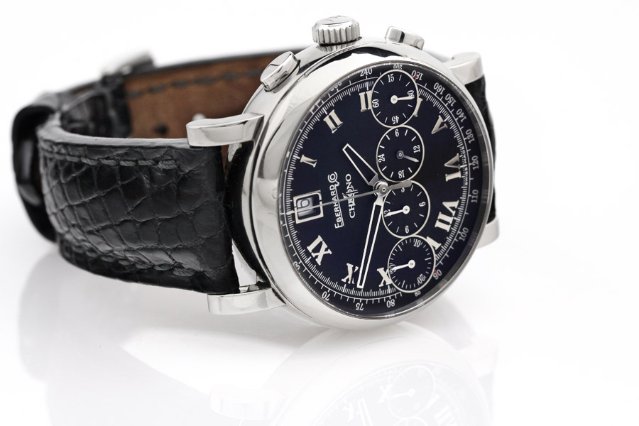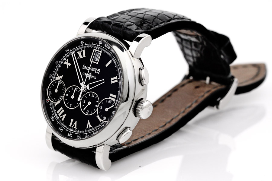 Престижные, швейцарские часы Eberhard & Ко Chrono 4 Bellissimo 31042-1. Часы мало использовались, по этому идеальны как с косметической , так и с механической стороны. Механизм используемый ЭТА 2894-2.Этот же механизм используется во многих других престижных часах:Omega Speedmaster, Chopard Mille Miglia Chrono, Ulysse Nardin Marine Chronograph, Hublot Navy, Girard Perregaux "pour Ferrari",многиx Tag Heuer Monaco, некоторых Carrera Grand Carera. Браслет-Аллигатор, новый, сделан под заказ.