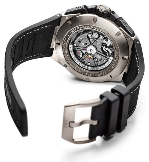 Чтобы владелец часов мог быстро посмотреть время, зафиксированное хронографом, специалисты компании IWC применили новаторский подход – «часы в часах». Как обычно, центральная стрелка хронографа показывает временные отрезки до 60 секунд, а часы и минуты можно прочесть на счетчике, расположенном на 12 часах, также легко, как время на аналоговом циферблате. Встроенная функция flyback позволяет переместить стрелку хронографа в стартовое положение во время текущего хронометража и сразу же начать новый хронометраж. Для того, чтобы снабдить часы этой практичной функцией, конструкторы компании IWC разработали мануфактурный калибр 89802, оснащенный системой автоматического подзавода с двойной защелкой. Механизм состоит из 474 деталей и накапливает запас хода до 68 часов. Поскольку 2013 год объявлен годом автомобильного спорта, инерционный груз выполнен в форме литого автомобильного диска. В этом можно убедиться, взглянув на механизм через прозрачное сапфировое стекло задней крышки часов ngenieur Perpetual Calendar Date-Month. Изысканный ремешок из черного, обшитого текстилем каучука гарантирует максимум комфорта и надежности в любых экстремальных ситуациях.
