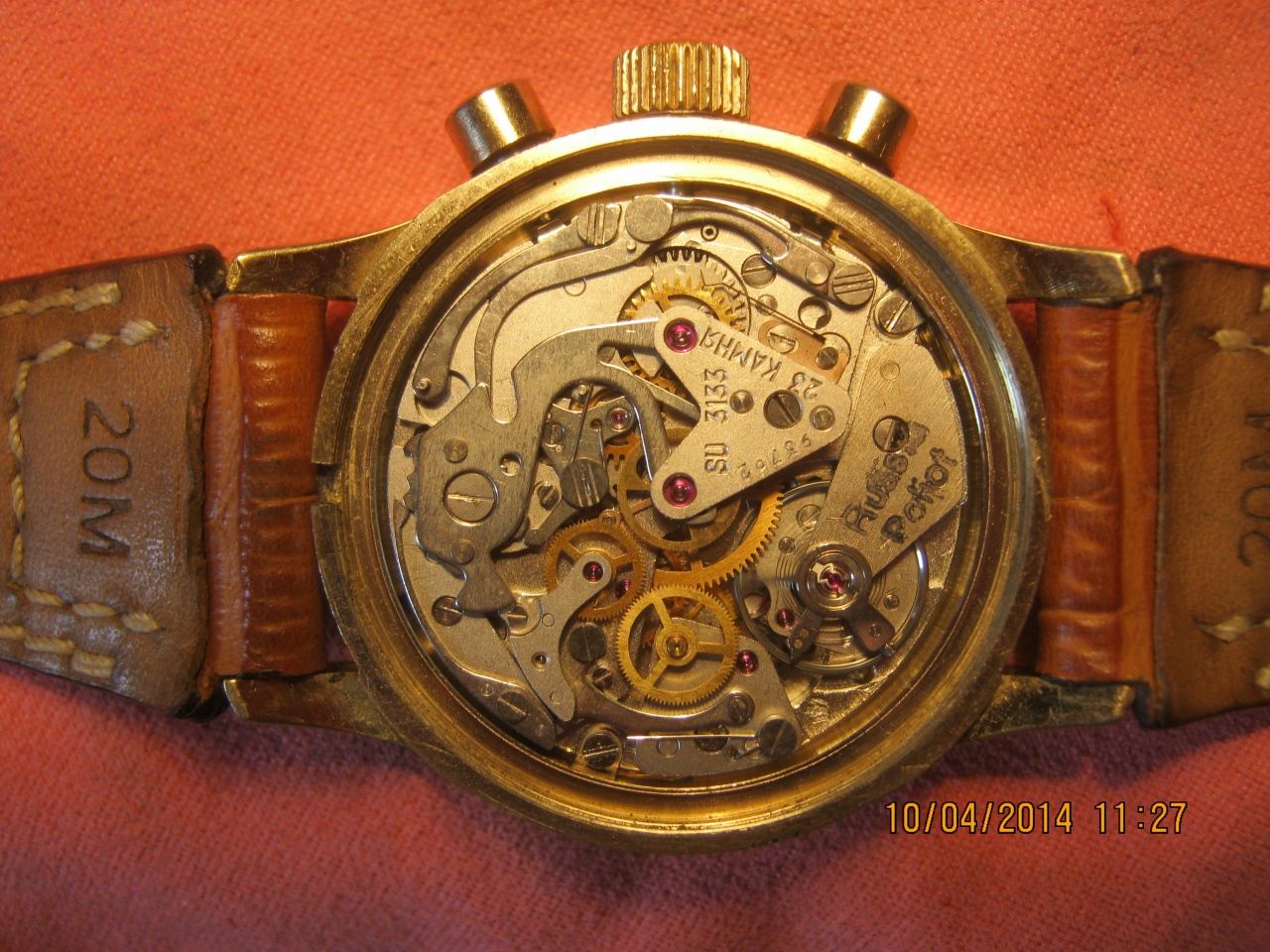 Часы завода Полет начала - середины 90 тых, достаточно редкая модель, с вращающимся безелем и завинчивающейся крышкой. На механизме клеймо SU (Soviet Union), рядом корявое травление "Poljot Russia". Дизайн местами содран то ли с АЧС, то ли с хронографов заказа вермахта.