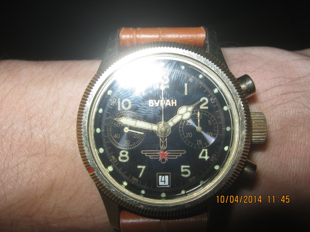 На корпусе и стекле (минерал) есть царапины, но покрытие не протерто, весной делали профилактику, заменили светомассу (бержеон). на фото с разных устройств.