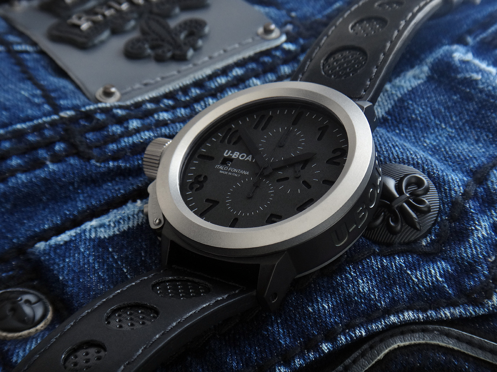 А у U-boat матовый титан совсем другой: глубокого серого цвета, и такой, даже не знаю как сказать - индустриальный, зернисто-шершавый по фактуре. Попробовал на фотографиях это передать.
