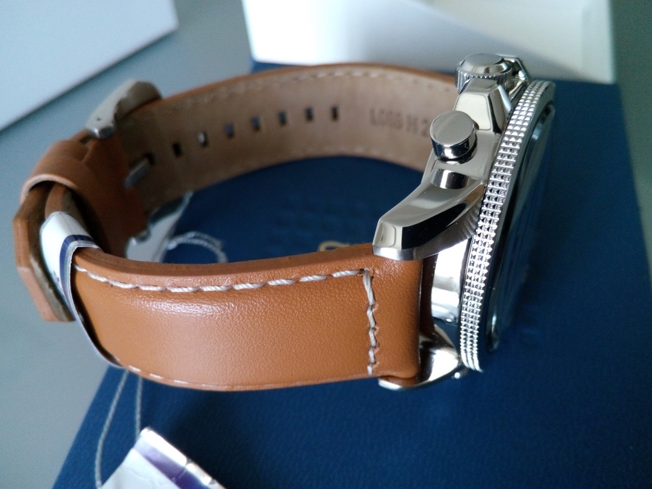 Кварцевый хронограф с функцией 12-ти часового будильника и подзарядкой аккумуляторов от солнечного света. Калибр V172. • Смещенная секундная стрелка в положении 9 часов. • Окошко даты. • 12-ти часовой будильник. • Секундомер с точностью показаний 1/20 сек и максимальным временем измерения - 59 минут 59 сек. Центральная стрелка - секундная стрелка хронографа. Счетчик минут расположен в положении 12 часов. • Режимы ADD - измерение времени с перерывом и SPLIT (сплит-хронограф) - промежуточный финиш. • Точность хода +/-60 сек в месяц. • Срок работы после полной зарядки аккумуляторов - 6 мес. • Индикация низкого заряда аккумуляторов. • Функция предотвращения избыточной перезарядки аккумуляторов. • Точность хода +/-15 сек в месяц. • Стекло: Хардлекс (Hardlex) – специальный минеральный хрусталь повышенной прочности, закалённый в кислоте, разработанный компанией SEIKO, и значительно превосходящее обычное минеральное стекло по прочности. • Светонакопительный состав на стрелках и маркерах часа. • Однонаправленный поворотный безель. • Корпус из высококачественного стального сплава 316L с высокими антикоррозийными свойствами. • Ремень из телячьей кожи. • Водозащита до 10 АТМ.