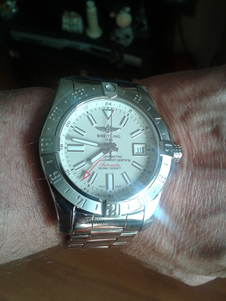 Добрый день всем! Сегодня стал обладателем красивых. элегантных часов, полученных благодаря многоуважаемому Руслану (V.J.C.). Огромное ему спасибо за терпение, которое он проявил к моим вопросам. Часы Breitling Avenger II GMT. Фото пока с телефона.