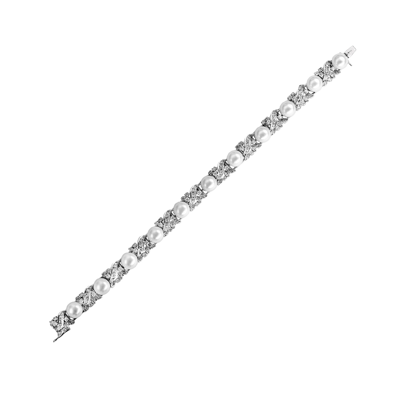 ~~~Браслет из белого золота с жемчугом и бриллиантами 1,5 карат~~~
