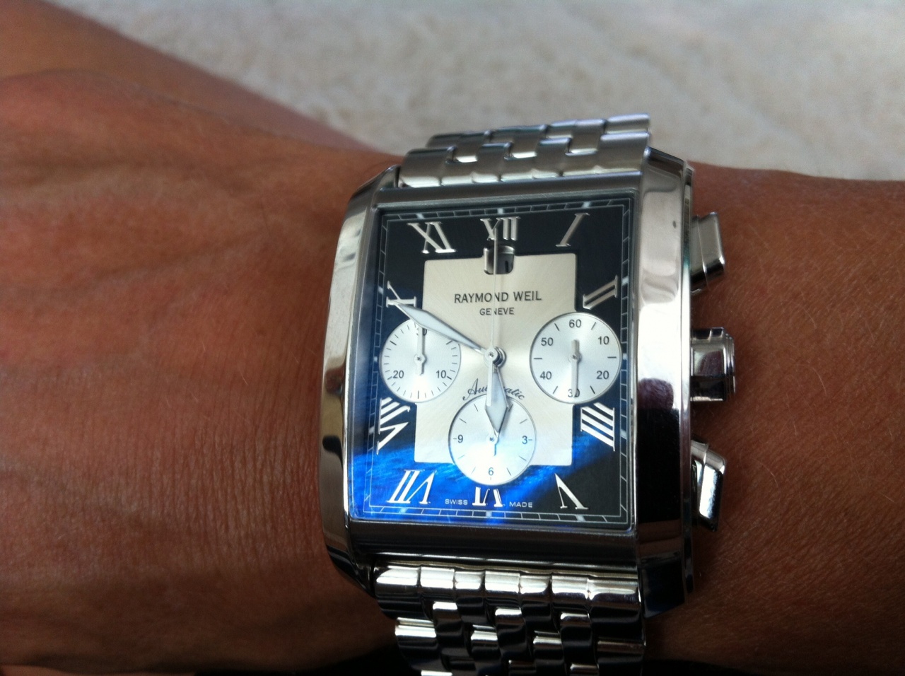 браслет из стали, раскладная застежка на кнопке с фирменной гравировкой.